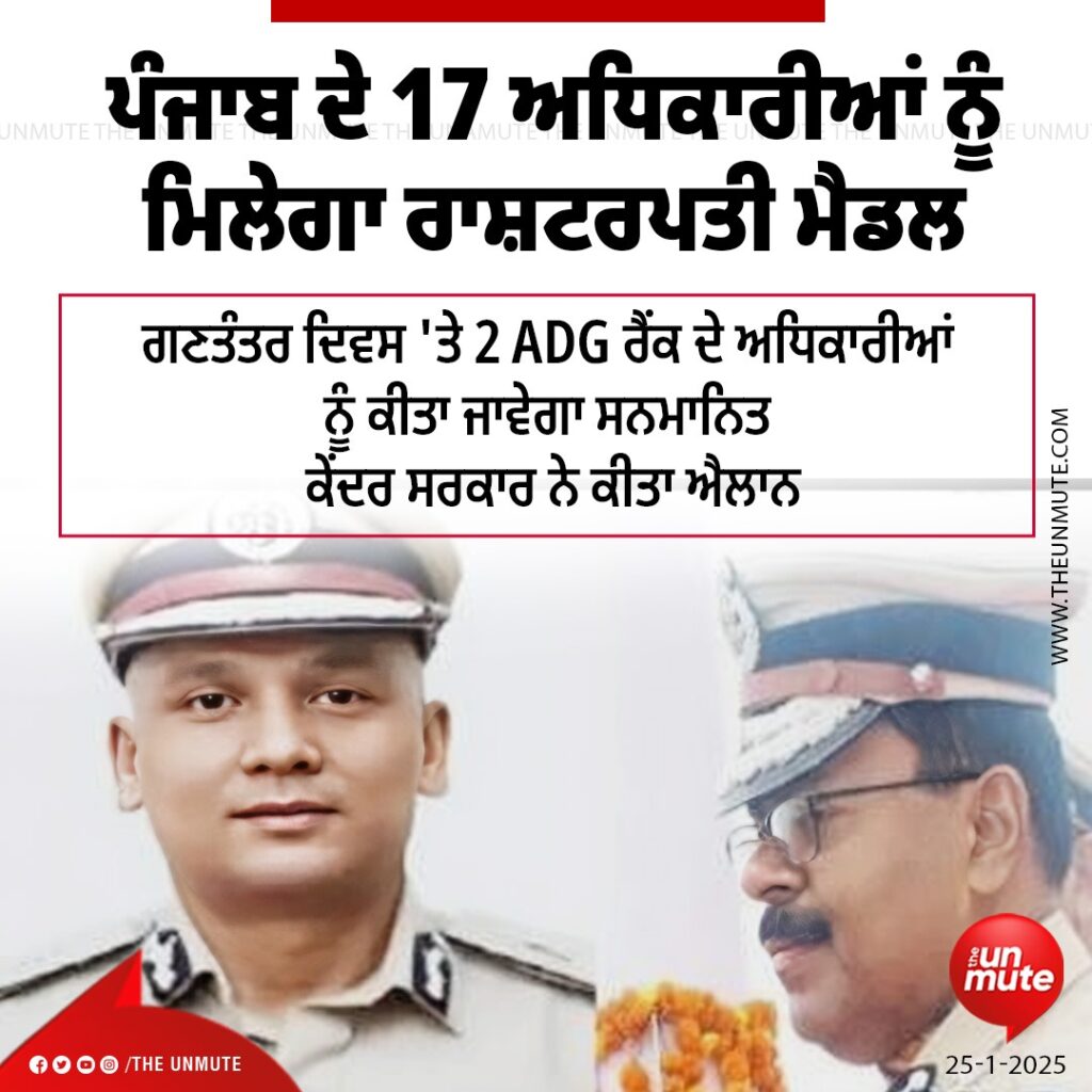 25 ਜਨਵਰੀ 2025: ਗਣਤੰਤਰ (Republic Day) ਦਿਵਸ ਦੇ ਮੌਕੇ ‘ਤੇ ਪੰਜਾਬ ਪੁਲਿਸ ਦੇ ਦੋ ਅਧਿਕਾਰੀਆਂ ਨੂੰ ਵਿਲੱਖਣ ਸੇਵਾਵਾਂ ਲਈ ਰਾਸ਼ਟਰਪਤੀ