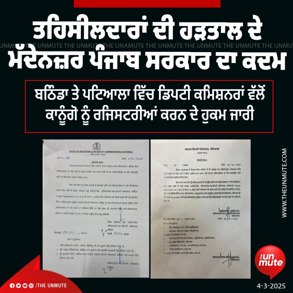 4 ਮਾਰਚ 2025: ਪੰਜਾਬ ਸਰਕਾਰ (punjab sarakr) ਨੇ ਮਾਲ ਅਧਿਕਾਰੀਆਂ ਦੀ ਹੜਤਾਲ ਨਾਲ ਨਜਿੱਠਣ ਲਈ ਇੱਕ ਵੱਡਾ ਫੈਸਲਾ ਲਿਆ ਹੈ।