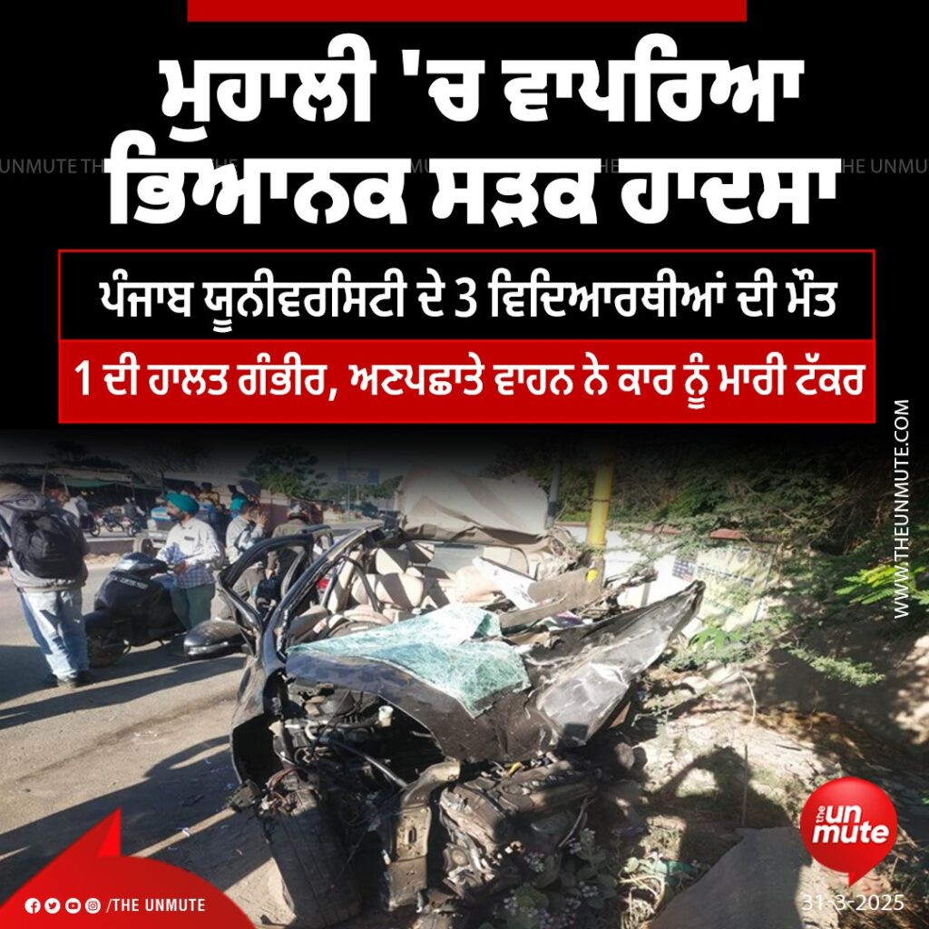 31 ਮਾਰਚ 2025: ਪੰਜਾਬ ਦੇ ਮੋਹਾਲੀ (mohali) ਦੇ ਸਿਸਵਾਂ ਰੋਡ ‘ਤੇ ਪਿਛਲੇ ਐਤਵਾਰ ਰਾਤ ਨੂੰ ਇੱਕ ਸੜਕ ਹਾਦਸਾ ਵਾਪਰਿਆ। ਜਿਸ