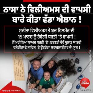 18 ਮਾਰਚ 2025: ਭਾਰਤੀ ਮੂਲ (Indian-American) ਦੀ ਅਮਰੀਕੀ ਪੁਲਾੜ ਯਾਤਰੀ ਸੁਨੀਤਾ ਵਿਲੀਅਮਜ਼ (Sunita Williams and her partner Butch) ਅਤੇ ਉਸ