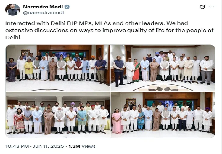 ਮੀਟਿੰਗ ਤੋਂ ਬਾਅਦ, ਪ੍ਰਧਾਨ ਮੰਤਰੀ ਮੋਦੀ ਨੇ ਸੋਸ਼ਲ ਮੀਡੀਆ ਪਲੇਟਫਾਰਮ ‘X’ ‘ਤੇ ਲਿਖਿਆ, “ਦਿੱਲੀ ਦੇ ਭਾਜਪਾ ਸੰਸਦ ਮੈਂਬਰਾਂ, ਵਿਧਾਇਕਾਂ ਅਤੇ ਹੋਰ ਨੇਤਾਵਾਂ ਨਾਲ ਗੱਲਬਾਤ ਕੀਤੀ। ਅਸੀਂ ਦਿੱਲੀ ਦੇ ਲੋਕਾਂ ਦੇ ਜੀਵਨ ਪੱਧਰ ਨੂੰ ਬਿਹਤਰ ਬਣਾਉਣ ਦੇ ਤਰੀਕਿਆਂ ‘ਤੇ ਵਿਆਪਕ ਚਰਚਾ ਕੀਤੀ।”
