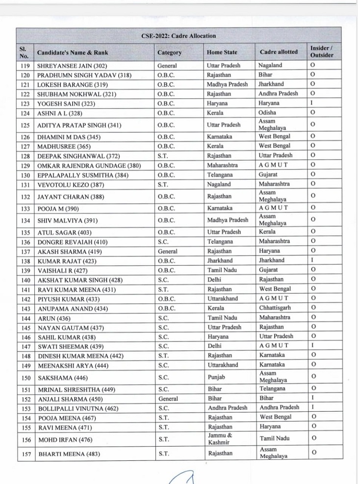 ਚੰਡੀਗੜ੍ਹ, 3 ਨਵੰਬਰ 2023: ਭਾਰਤ ਸਰਕਾਰ ਨੇ UPSC ਸਿਵਲ ਸਰਵਿਸਿਜ਼ ਪ੍ਰੀਖਿਆ-2022 ਪਾਸ ਕਰਨ ਵਾਲੇ 179 ਅਧਿਕਾਰੀਆਂ (IAS officers) ਨੂੰ ਉਨ੍ਹਾਂ ਸੂਬੇ ਅਲਾਟ ਕੀਤੇ ਹਨ | ਇਨ੍ਹਾਂ ਦੀ ਦੀ ਭਾਰਤੀ ਪ੍ਰਸ਼ਾਸਨਿਕ ਸੇਵਾ (IAS) ਦੀ ਚੋਣ ਕੀਤੀ ਹੈ। ਇਨ੍ਹਾਂ ਵਿੱਚੋਂ ਪੰਜ ਅਧਿਕਾਰੀਆਂ ਨੂੰ ਪੰਜਾਬ ਕੇਡਰ ਵਿੱਚ ਭੇਜਿਆ ਗਿਆ ਹੈ। ਇਨ੍ਹਾਂ ਵਿੱਚੋਂ ਪੰਜਾਬ ਦੀ ਸੋਨਮ ਵੀ ਹੈ, ਜਿਸ ਨੇ ਆਪਣਾ ਗ੍ਰਹਿ ਰਾਜ ਚੁਣਿਆ ਹੈ।