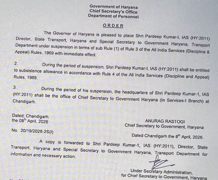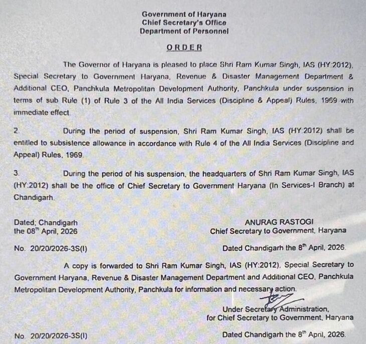 ਮੁਅੱਤਲ ਕੀਤੇ ਅਧਿਕਾਰੀਆਂ ‘ਚ 2011 ਕੇਡਰ ਦੇ ਪ੍ਰਦੀਪ ਕੁਮਾਰ-I ਅਤੇ 2012 ਕੇਡਰ ਦੇ ਰਾਮ ਕੁਮਾਰ ਸਿੰਘ ਸ਼ਾਮਲ ਹਨ। ਪ੍ਰਦੀਪ ਕੁਮਾਰ ਇਸ ਸਮੇਂ ਰਾਜ ਆਵਾਜਾਈ ਵਿਭਾਗ ਦੇ ਡਾਇਰੈਕਟਰ ਅਤੇ ਵਿਸ਼ੇਸ਼ ਸਕੱਤਰ ਸਨ। ਜਦੋਂ ਕਿ ਰਾਮ ਕੁਮਾਰ ਸਿੰਘ ਵਿਸ਼ੇਸ਼ ਸਕੱਤਰ, ਮਾਲੀਆ ਅਤੇ ਆਫ਼ਤ ਪ੍ਰਬੰਧਨ ਵਿਭਾਗ ਅਤੇ ਪੰਚਕੂਲਾ ਮੈਟਰੋਪੋਲੀਟਨ ਵਿਕਾਸ ਅਥਾਰਟੀ (ਪੀਐਮਡੀਏ) ਵਜੋਂ ਕੰਮ ਕਰ ਰਹੇ ਸਨ।