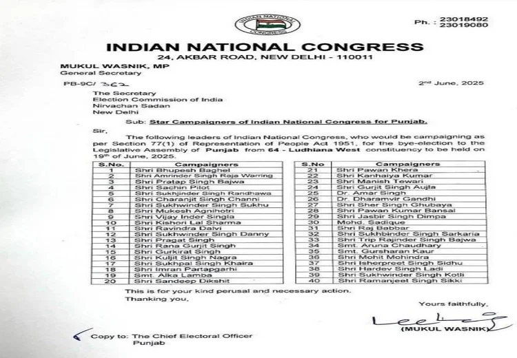 4 ਜੂਨ 2205: ਲੁਧਿਆਣਾ (ludhiana) ਪੱਛਮੀ ਵਿਧਾਨ ਸਭਾ ਹਲਕੇ ਵਿੱਚ ਹੋਣ ਵਾਲੀ ਉਪ ਚੋਣ ਲਈ ਤਿਆਰੀਆਂ ਜ਼ੋਰਾਂ-ਸ਼ੋਰਾਂ ਨਾਲ ਚੱਲ ਰਹੀਆਂ ਹਨ। ਪਾਰਟੀਆਂ ਆਪਣੇ-ਆਪਣੇ ਉਮੀਦਵਾਰਾਂ ਦੇ ਹੱਕ ਵਿੱਚ ਚੋਣ ਪ੍ਰਚਾਰ ਲਗਾਤਾਰ ਤੇਜ਼ ਕਰ ਰਹੀਆਂ ਹਨ। ਕਾਂਗਰਸ ਪਾਰਟੀ (congress party) ਨੇ ਲੁਧਿਆਣਾ ਪੱਛਮੀ ਵਿਧਾਨ ਸਭਾ ਹਲਕੇ ਦੀ ਚੋਣ ਲਈ ਸਟਾਰ ਪ੍ਰਚਾਰਕਾਂ ਦੀ ਸੂਚੀ ਵੀ ਜਾਰੀ ਕੀਤੀ ਹੈ।