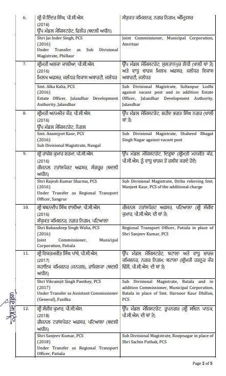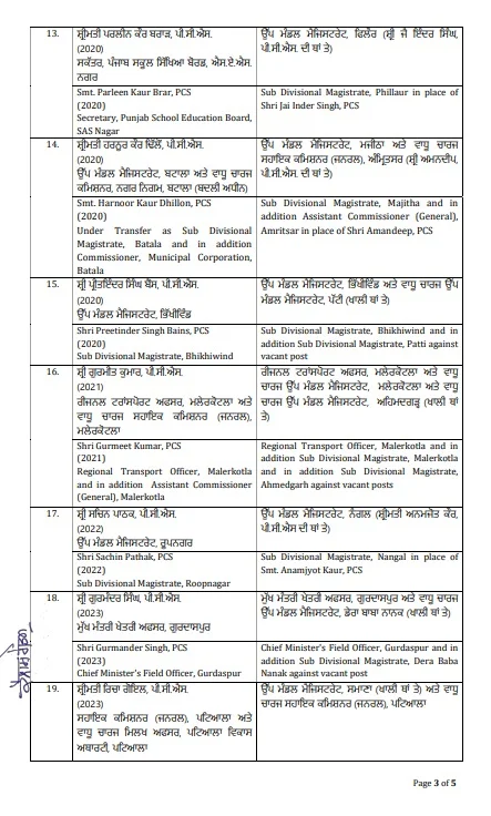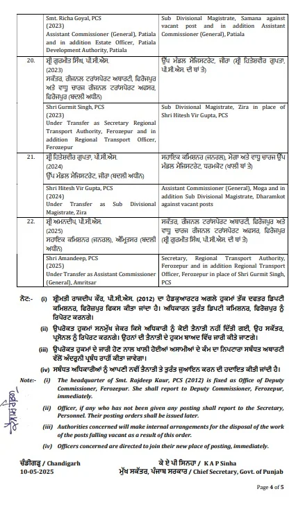ਚੰਡੀਗੜ੍ਹ, 10 ਮਈ 2025: PCS Transfers: ਪੰਜਾਬ ਸਰਕਾਰ ਨੇ ਵੱਡਾ ਪ੍ਰਸ਼ਾਸਨਿਕ ਫੇਰਬਦਲ ਕੀਤਾ ਹੈ | ਇਸਦੇ ਤਹਿਤ ਸੂਬਾ ਸਰਕਾਰ ਨੇ 22 ਪੀਸੀਐਸ ਅਧਿਕਾਰੀਆਂ ਦੀਆਂ ਬਦਲੀਆਂ ਅਤੇ ਤਾਇਨਾਤੀਆਂ ਕੀਤੀ ਹਨ | ਤਬਾਦਲੇ ਸੰਬੰਧੀ ਸੂਚੀ ਹੇਠ ਅਨੁਸਾਰ ਹੈ |
