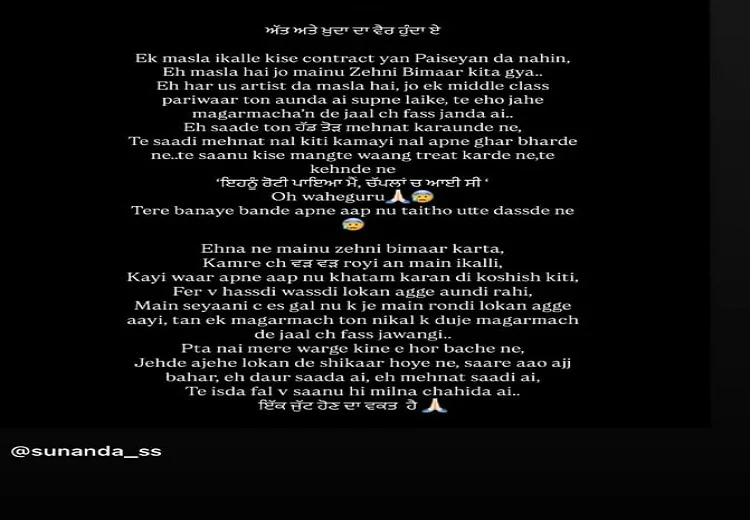 11 ਮਾਰਚ 2025: ਜਿਵੇ ਕਿ ਸਭ ਨੂੰ ਹੀ ਪਤਾ ਹੈ ਕਿ ਕੁੱਝ ਦਿਨ ਪਹਿਲਾਂ ਸੁਨੰਦਾ ਸ਼ਰਮਾ (Sunanda Sharma) ਦੇ ਨਾਲ ਇਕ ਘਟਨਾ ਵਾਪਰੀ ਸੀ, ਜਿਸ ਦੇ ਵਿੱਚ ਉਨ੍ਹਾਂ ਇਕ ਕੰਪਨੀ ਉਤੇ ਇਲਜ਼ਾਮ ਲਗਾਇਆ ਸੀ ਕਿ ਉਸ ਕੰਪਨੀ ਦੇ ਵੱਲੋਂ ਉਨ੍ਹਾਂ ਨੂੰ ਤੰਗ ਪ੍ਰੇਸ਼ਾਨ ਕੀਤਾ ਜਾ ਰਿਹਾ ਹੈ|