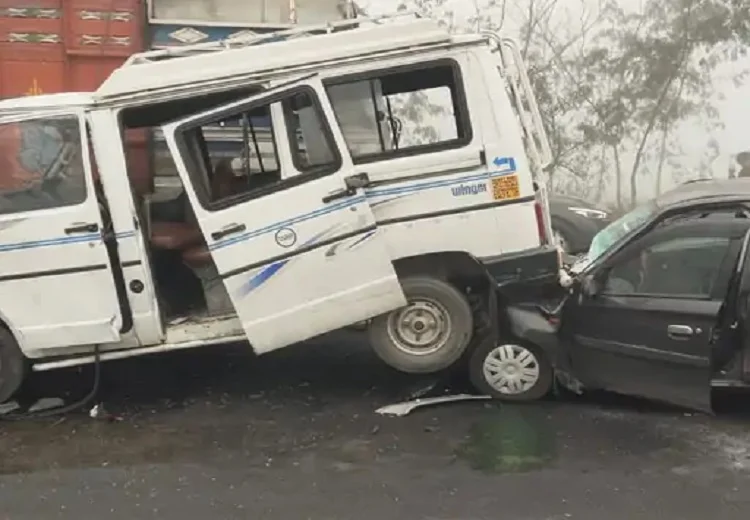17 ਜਨਵਰੀ 2026: ਗੁਰਦਾਸਪੁਰ (gurdaspur) ਦੇ ਕਲਾਨੌਰ ਰੋਡ ‘ਤੇ ਪਿੰਡ ਬਿਸ਼ਨਕੋਟ ਨੇੜੇ ਧੁੰਦ ਕਾਰਨ ਇੱਕ ਸਕੂਲ ਵੈਨ ਅਤੇ ਇੱਕ ਟਰੱਕ ਦੀ ਟੱਕਰ ਹੋ ਗਈ। ਇਸ ਹਾਦਸੇ ਵਿੱਚ ਵੈਨ ਵਿੱਚ ਸਵਾਰ ਨੌਂ ਸਰਕਾਰੀ ਅਧਿਆਪਕ ਜ਼ਖਮੀ ਹੋ ਗਏ। ਸਾਰੇ ਜ਼ਖਮੀਆਂ ਨੂੰ ਇਲਾਜ ਲਈ ਗੁਰਦਾਸਪੁਰ ਦੇ ਸਰਕਾਰੀ ਹਸਪਤਾਲ ਵਿੱਚ ਦਾਖਲ ਕਰਵਾਇਆ ਗਿਆ ਹੈ।