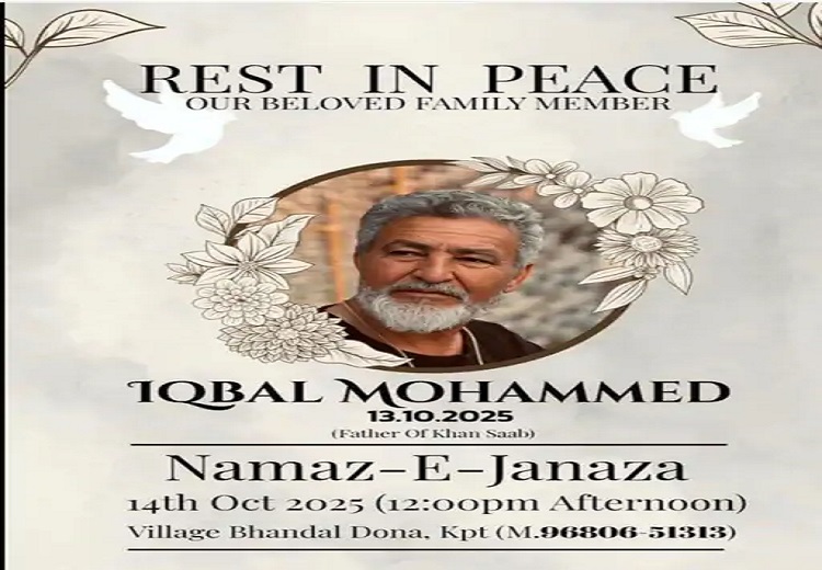 14 ਅਕਤੂਬਰ 2025: ਪੰਜਾਬੀ ਸੰਗੀਤ ਜਗਤ ਤੋਂ ਦੁਖਦਾਈ ਖ਼ਬਰ ਆਈ ਹੈ। ਪ੍ਰਸਿੱਧ ਗਾਇਕ ਖਾਨ ਸਾਬ੍ਹ (Singer Khan Saab) ਦੇ ਪਿਤਾ ਇਕਬਾਲ ਮੁਹੰਮਦ (70) ਦਾ ਦੇਹਾਂਤ ਹੋ ਗਿਆ ਹੈ। ਪਰਿਵਾਰਕ ਸੂਤਰਾਂ ਅਨੁਸਾਰ, ਖਾਨ ਸਾਬ੍ਹ ਦੇ ਪਿਤਾ ਫਗਵਾੜਾ ਵਿਖੇ ਆਪਣੇ ਪੁੱਤਰ ਦੇ ਘਰ ਜਾ ਰਹੇ ਸਨ ਜਦੋਂ ਉਨ੍ਹਾਂ ਨੂੰ ਦਿਲ ਦਾ ਦੌਰਾ ਪਿਆ ਅਤੇ ਉੱਥੇ ਹੀ ਉਨ੍ਹਾਂ ਦੀ ਮੌਤ ਹੋ ਗਈ। ਇਸ ਤੋਂ ਬਾਅਦ, ਖਾਨ ਸਾਬ੍ਹ ਦੀ ਦੇਹ ਨੂੰ ਉਨ੍ਹਾਂ ਦੇ ਪਿੰਡ ਭੰਡਾਲ ਦੋਨਾ ਲਿਜਾਇਆ ਗਿਆ, ਜਿੱਥੇ ਅੱਜ ਦੁਪਹਿਰ 12 ਵਜੇ ਅੰਤਿਮ ਸੰਸਕਾਰ ਦੀ ਨਮਾਜ਼ ਅਦਾ ਕੀਤੀ ਜਾਵੇਗੀ।